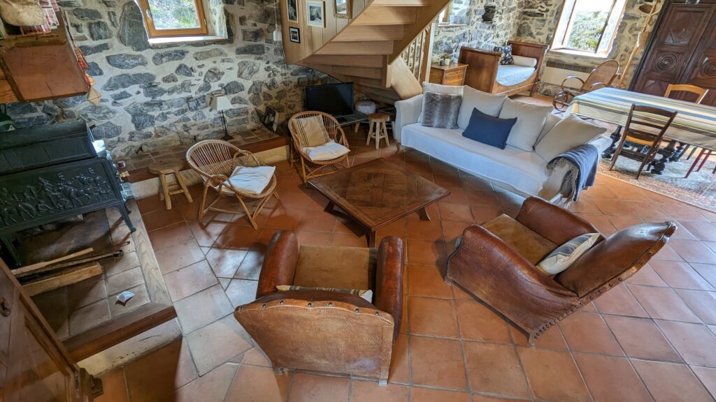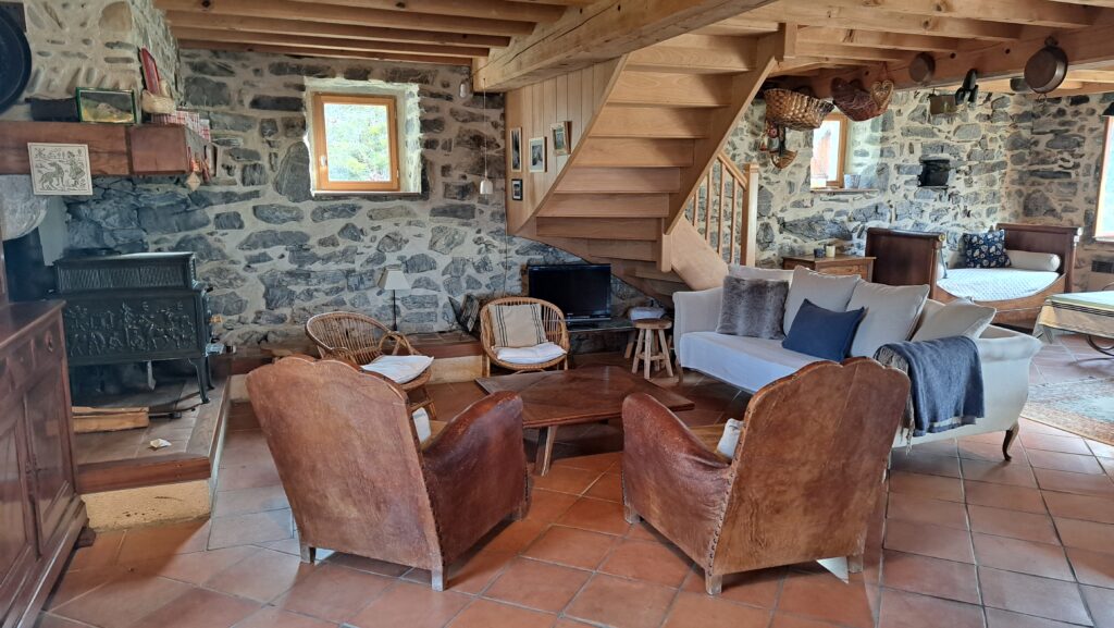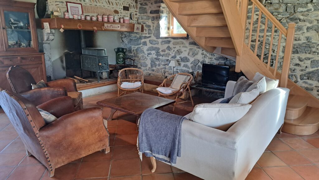 Nous ne louons la maison que durant la belle saison, il n’y a apriori pas besoin de chauffer durant cette période, il y a cependant quelques convecteurs, ainsi qu’un gros poêle a bois dont le fonctionnement est un peu compliqué pour les non-initiés.